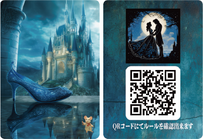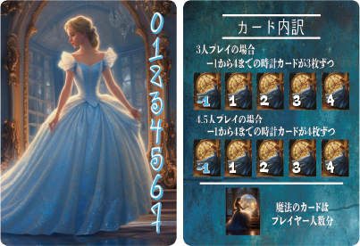 ①シンデレラカードとガラスの靴カードを1枚ずつ配り、手元に置きます。