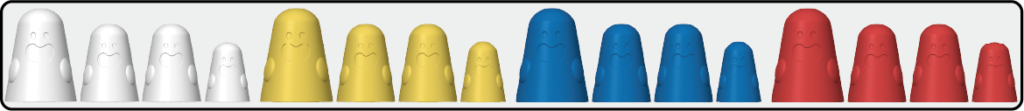 おばけコマは大・中・小とサイズが異なり、移動先に小さいコマがある場合は、その上から被せて隠すことができます。