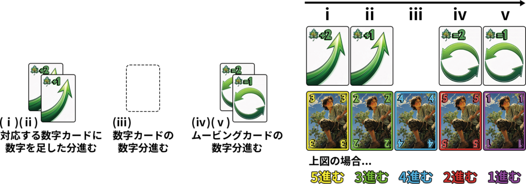ムービングエリアのⅰ~ⅴの順にカードの処理を行います。