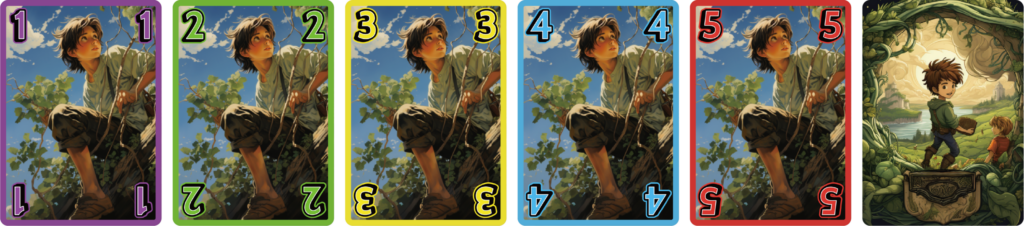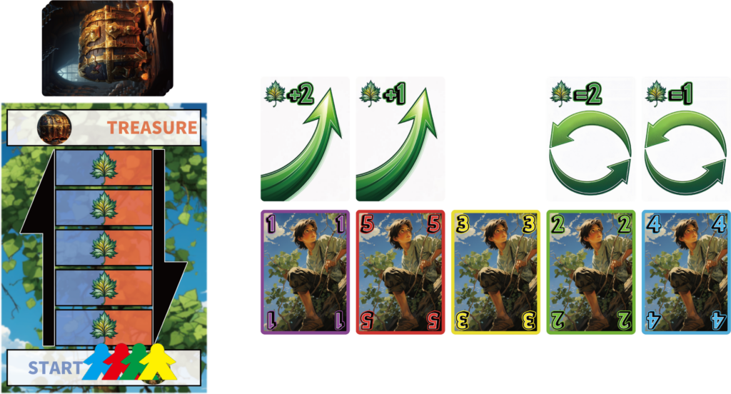 ●ゲームの準備:数字カードの1~5を裏向きでよく混ぜ「山札」として置きます。