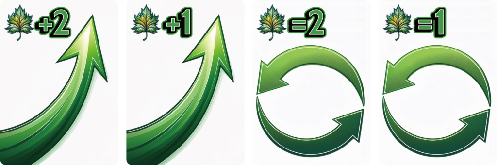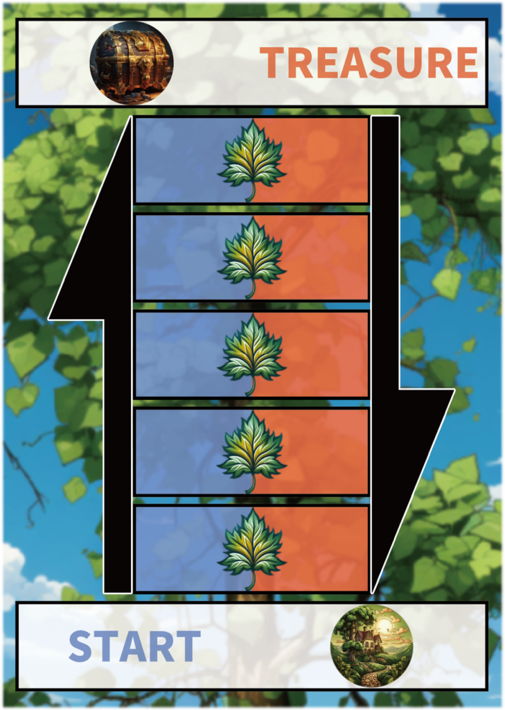 ●葉っぱに書かれた矢印は登り/降りを区切っています。ただし、登り/降り関係なく同じ葉っぱに2人乗るとマスバッティングとなります。