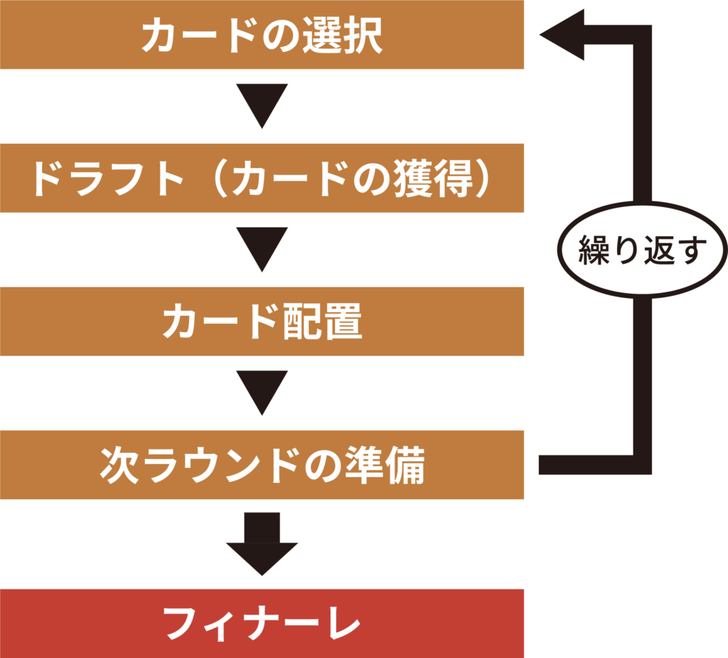ここまでが1ラウンドとなり、プレイ人数に応じたラウンド数を繰り返します。